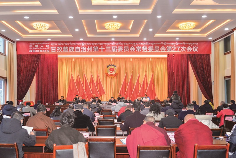 12月21日,政协甘孜州第十三届委员会常务委员会第27次会议在康定召开。州政协主席舒大春出席会议并讲话,州政协副主席杨庆华主持会议。