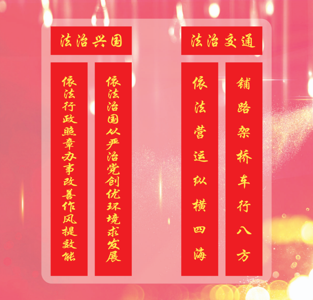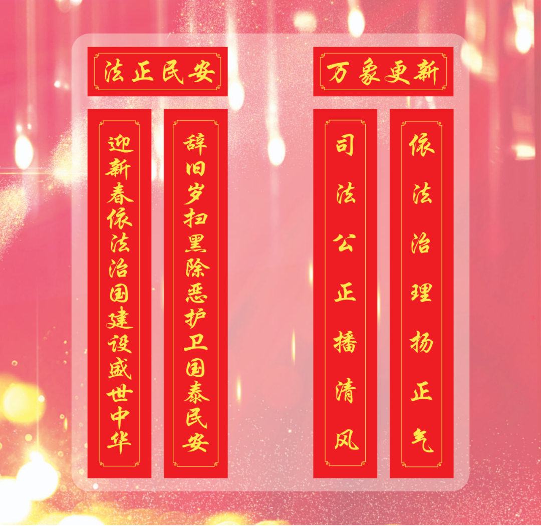 法治春联将传统的中华春联文化与法治宣传教育紧密结合,结合全省开展的“法治春联进万家”活动,把新春祝福送到千家万户,把法治理念送进人民群众心中。用法治春联映红万家灯火,为传统新春佳节增添浓浓法治“年味”。
